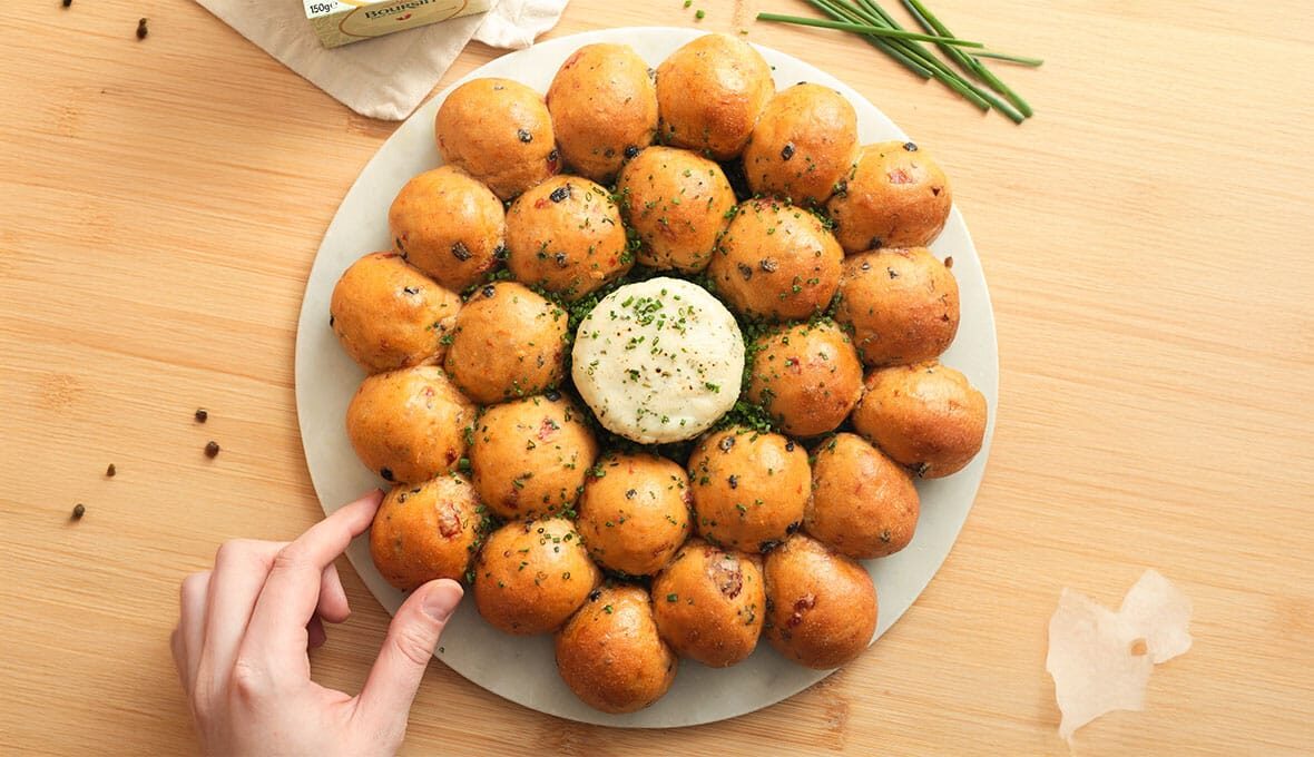Tear, share, and dip into plant-based perfection. Golden dough balls, bursting with olives & sundried tomatoes, baked around a melty Boursin Plant-Based centre. Save this recipe for a new go-to for cosy nights in & get-together moments.